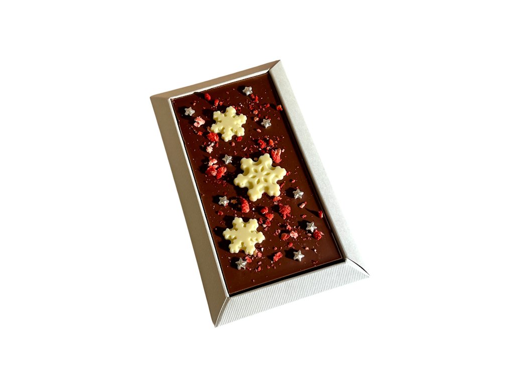 Skvělá francouzská mléčná čokoláda vyšperkovaná o sušené jahody.